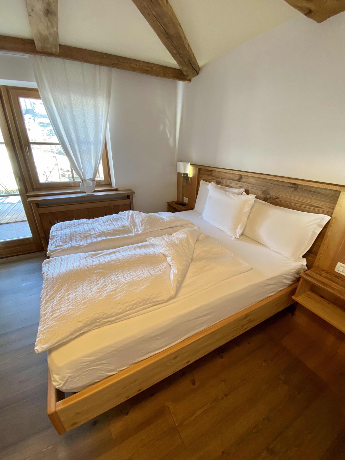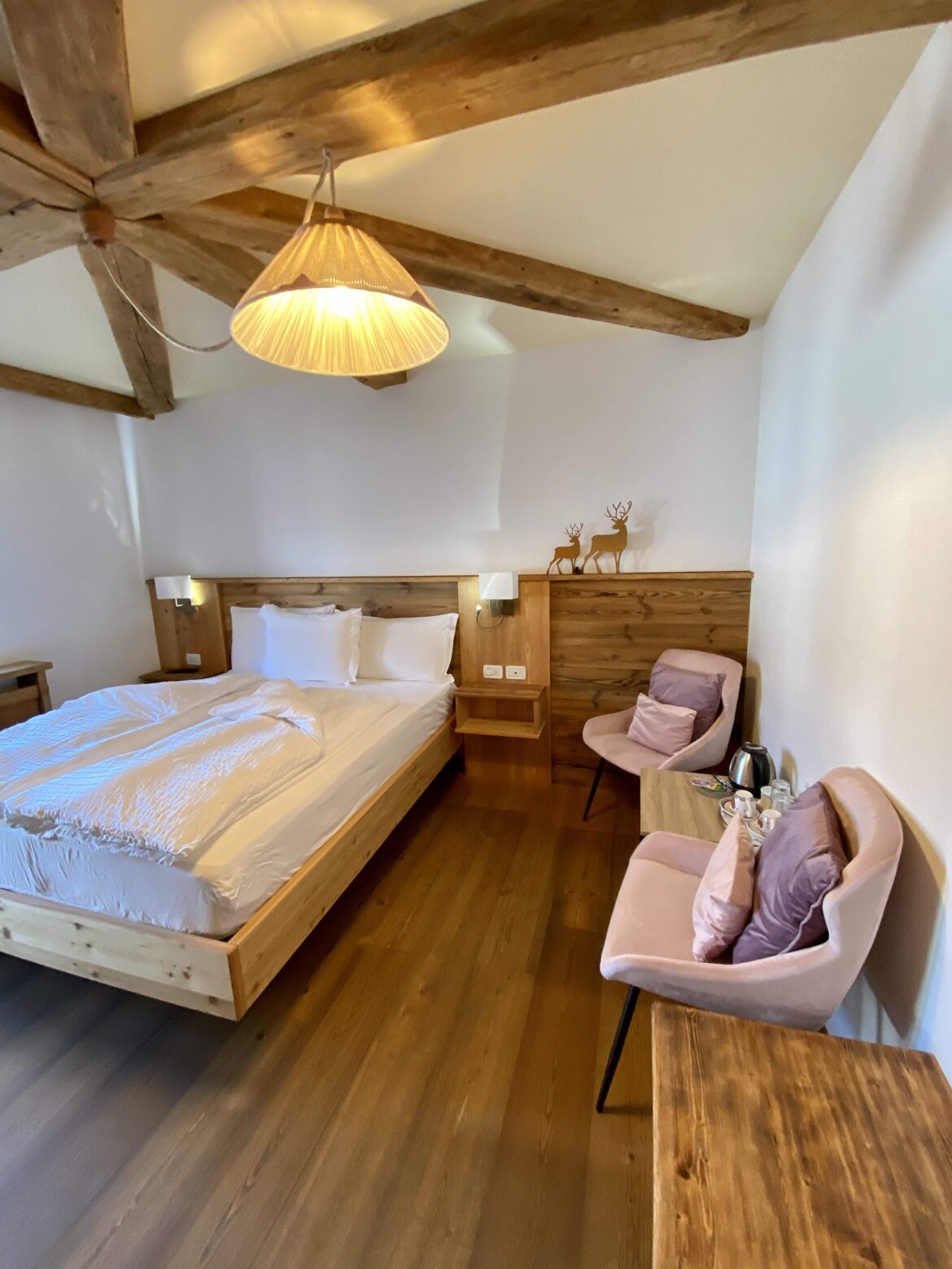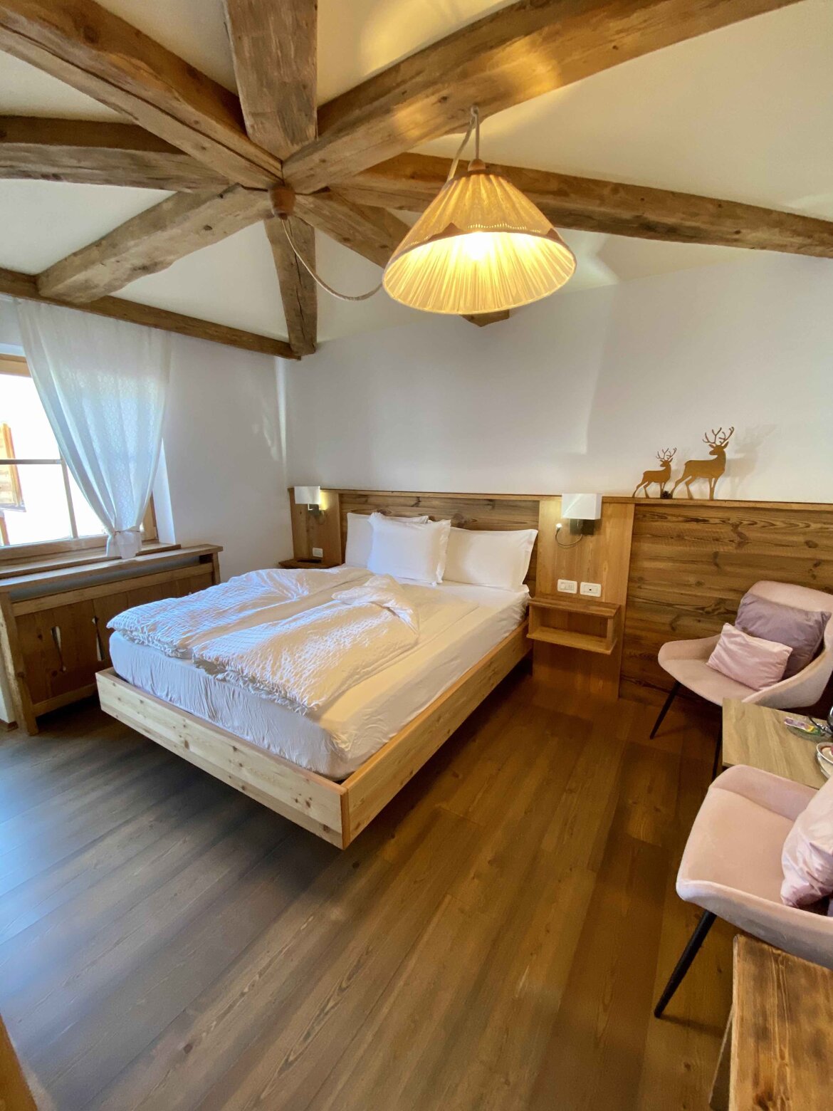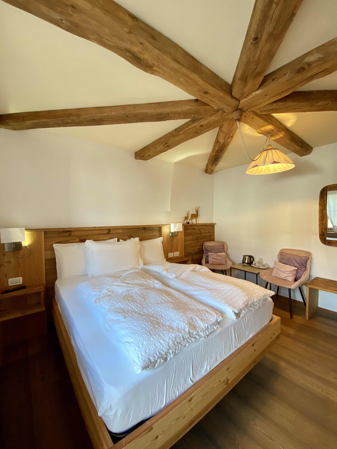 Lasciati incantare da una delle nostre gemme più esclusive: la Camera Matrimoniale Superior con Giardino Privato. Arredata con pregiato legno antico della Valle di Fiemme, questa stanza emana un delicato profumo naturale che richiama la magia del bosco. Un design lineare ma accogliente crea un’atmosfera calda e perfetta per un soggiorno romantico in due.