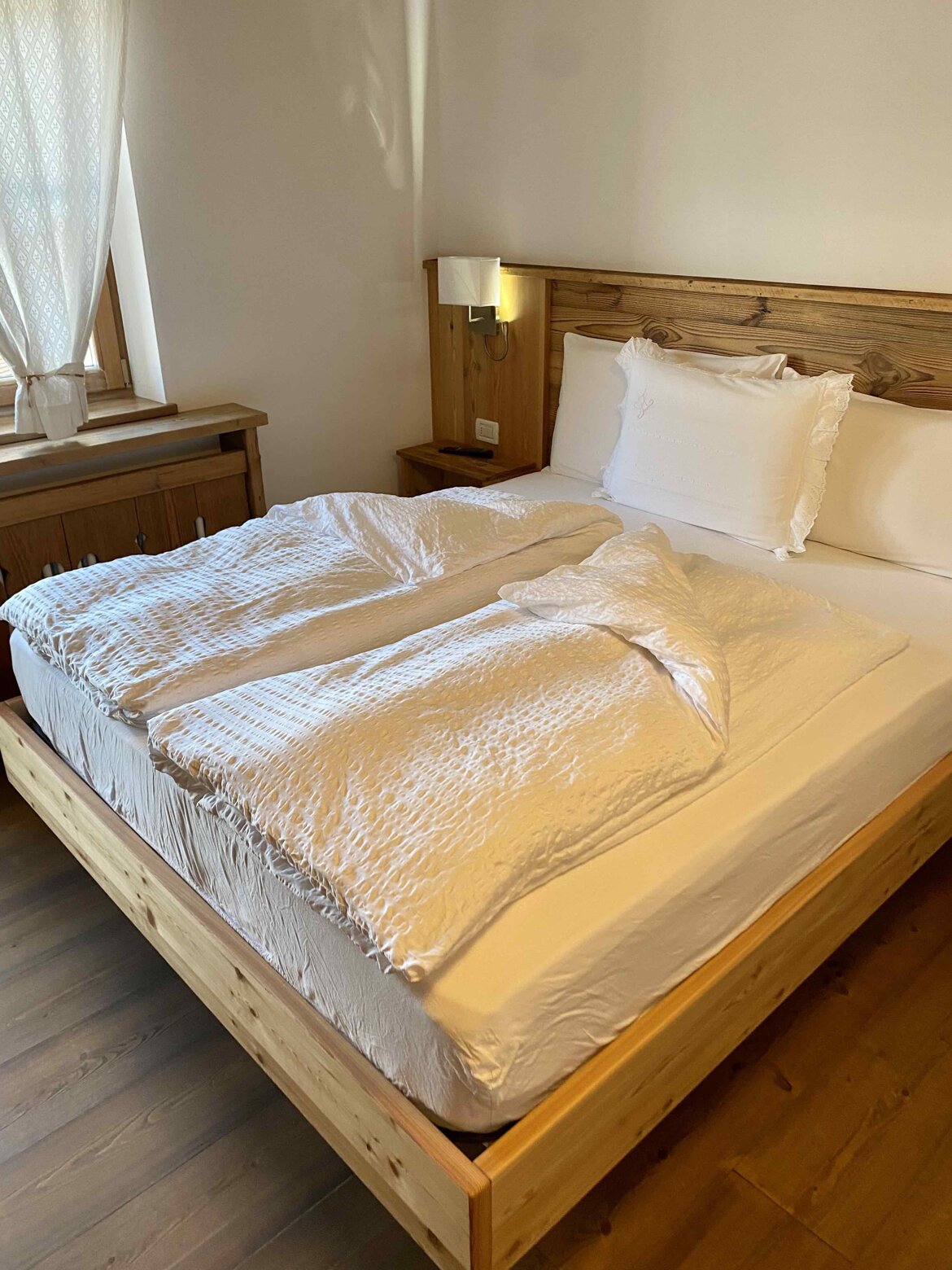 Per garantirti il miglior sonno ristoratore, tutte le nostre camere sono dotate di materassi con strato in Memory Foam, una tecnologia che si adatta al tuo corpo per offrirti un riposo ottimale. Il pavimento in legno naturale di larice della Valle di Fiemme aggiunge un tocco autentico, unito al riscaldamento a pavimento per un comfort ideale.