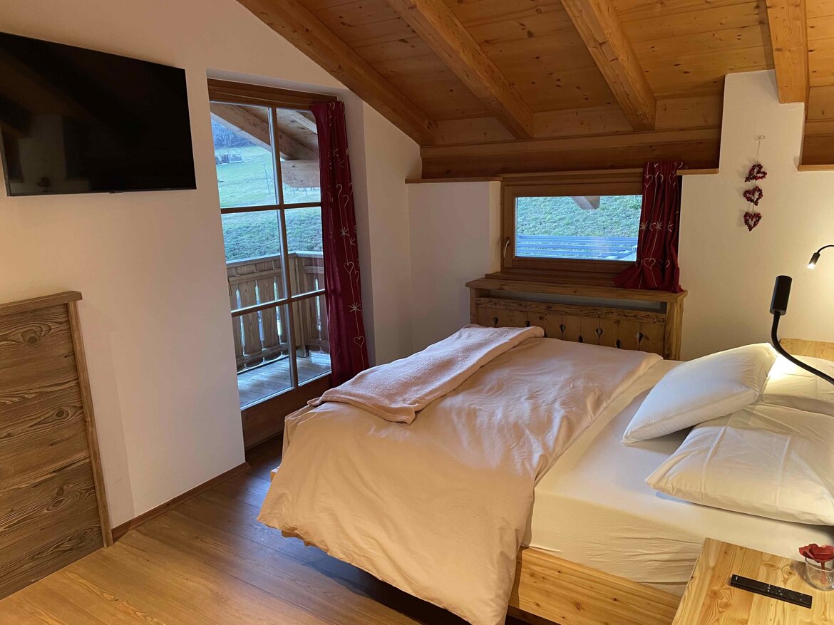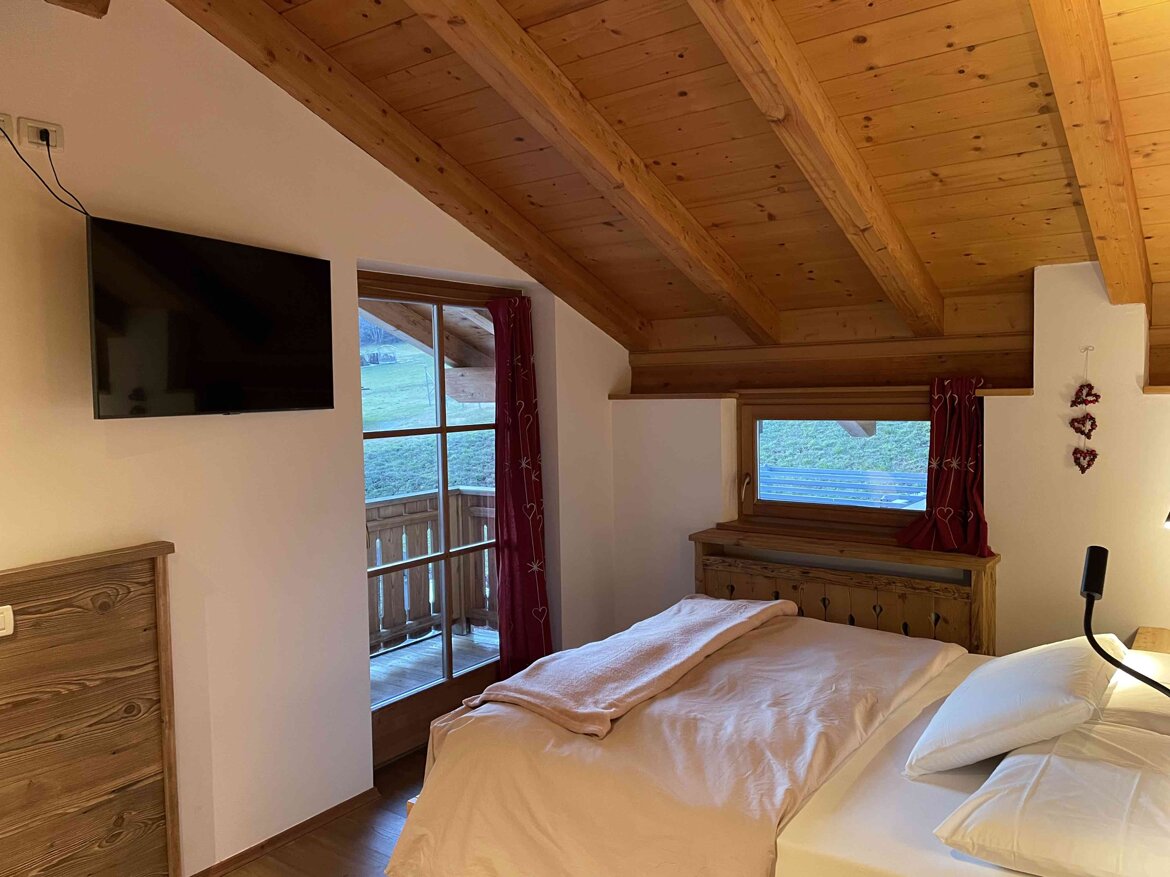 Questa stanza matrimoniale, mansardata e con balcone è perfetta per le coppie e, con l'aggiunta di un terzo letto, anche per le famiglie.